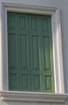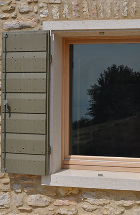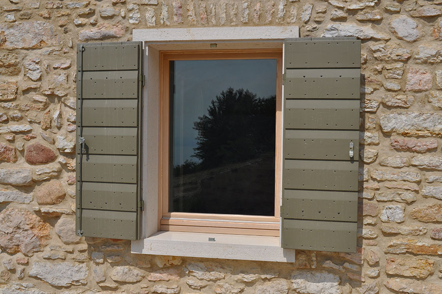 in legno di abete piallata a mano con chiodi ribattuti con finestrella completa di inferriata e sportellini in legno