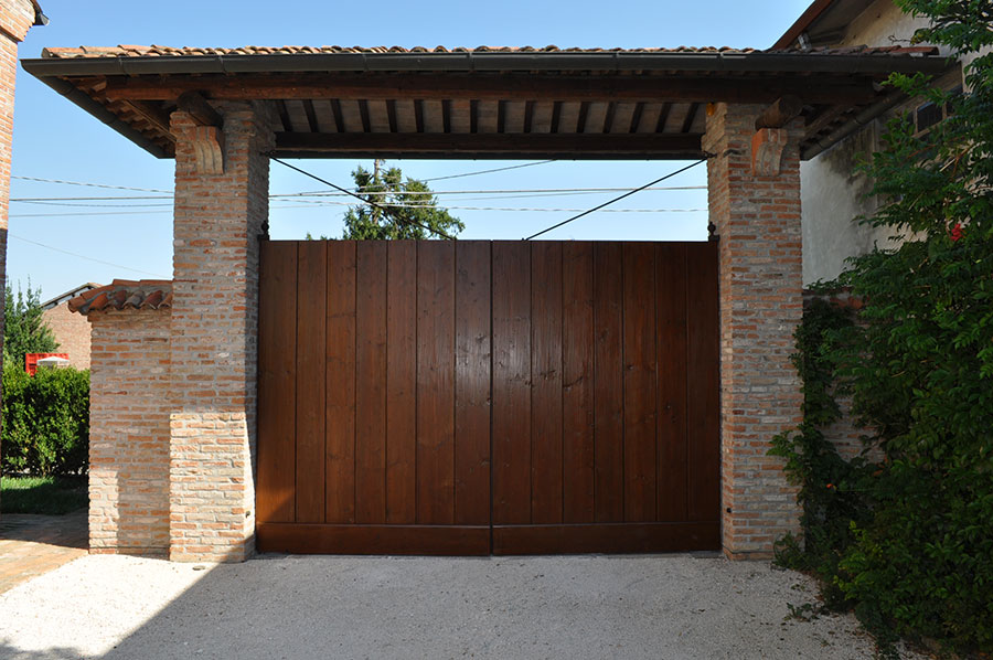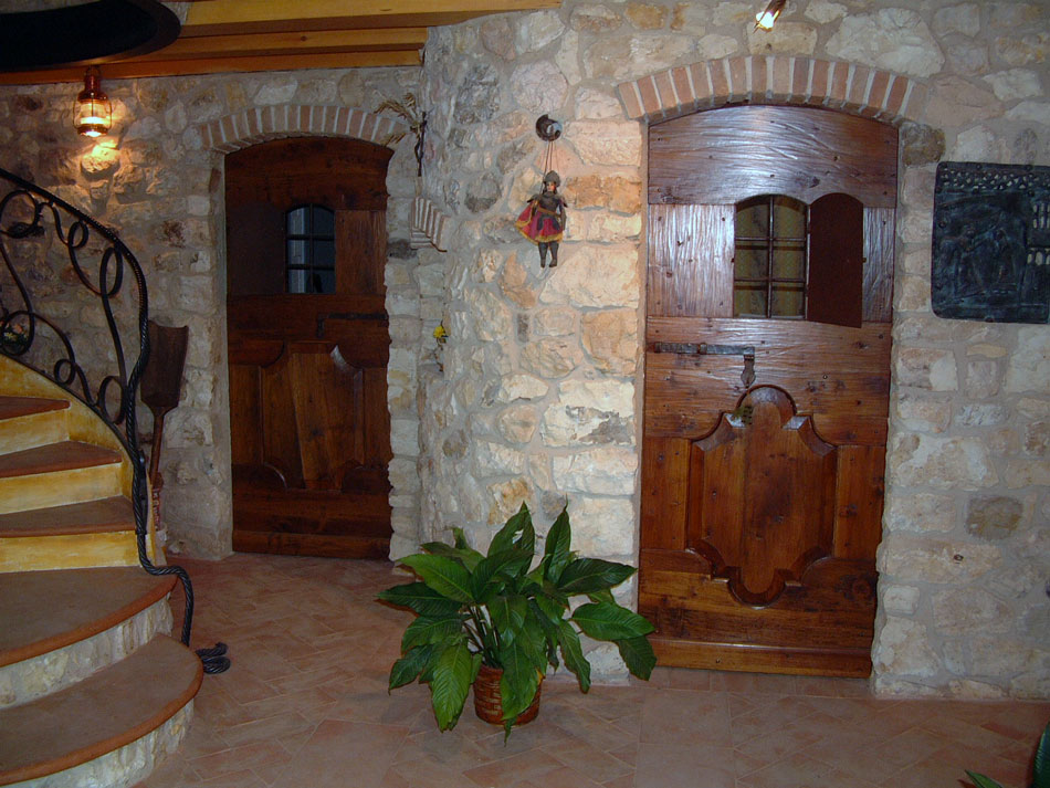 in legno di noce piallata a mano con catenacci originali e finestrella completa di inferriata e sportellino in ferro battuto